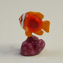 ハマクマノミ Tomato Clownfish Amphiprion frenatus 製作期間2002.3/12-3/18 最初、プッシュピンは 幼魚でそろえようと思っていたんですが、 ネタがすぐに尽きそうなので(笑) で、2号はハマちゃんです♪ 40001番GET AKIKOさんにもらっていただきました♪ Thank you ! |